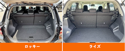 一方でライズは荷室下のデッキボード下に小物収納スペースを追加できる仕様があり、細かな荷物の整理に便利です。